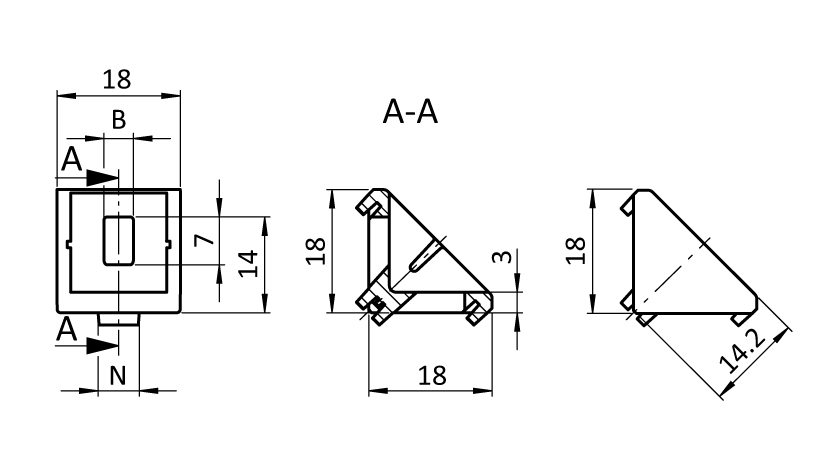 093W203N06S04 | 12 | Alu color | Powder coated | B | 4.3 | 2 hammer nuts - slot 6 - M4. - 2 screws DIN 7984 - M4 x 8 | 6 | incl. assembly set |